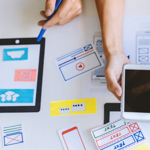 Con el objeto de comprobar si las pantallas que se van a diseñar cumplen con el requerimiento del usuario, se procedió a diseñar a nivel de estructura con wireframes hechos a mano sin darle enfásis al diseño sino a las funcionalidades y como se conectan estas entre si.